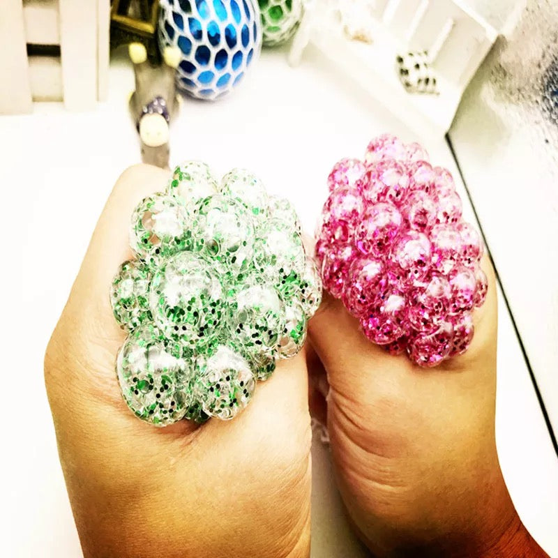 Pelota de malla para apretar para niños y adultos, bolas de estrés de uva, alivio de la ansiedad, juego sensorial para autismo, alivio del estrés de ventilación cerebros CHICOS MOD A03