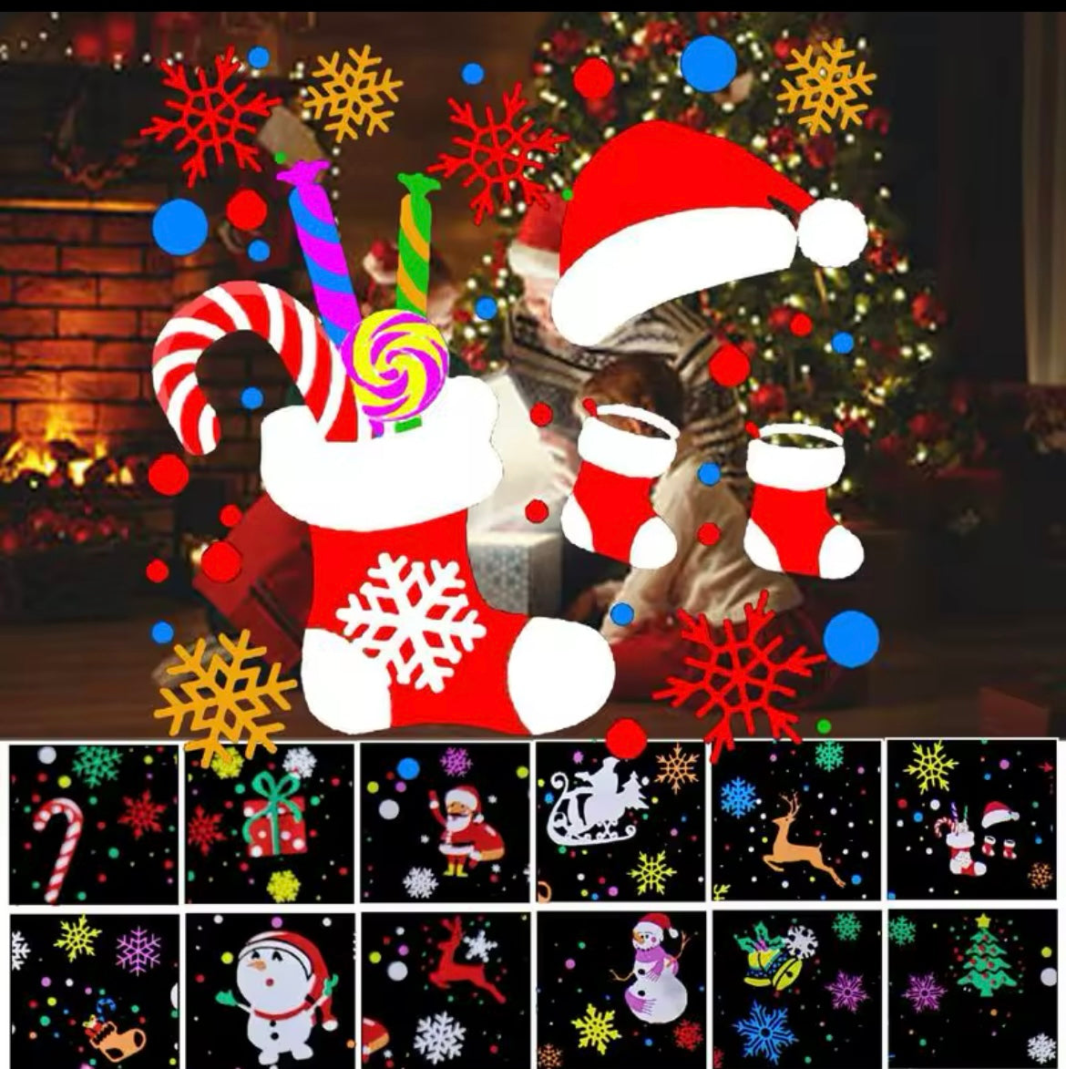 Proyector láser LED para ventana de Navidad, lámpara de proyección de 16 patrones, copo de nieve, alce, decoración de Puerta del hogar, fiesta de navidad MOD GJ169