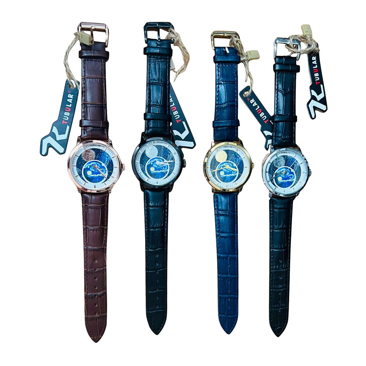 Reloj correa de cuero NOCHE ESTRELLADA manecillas TUBULAR