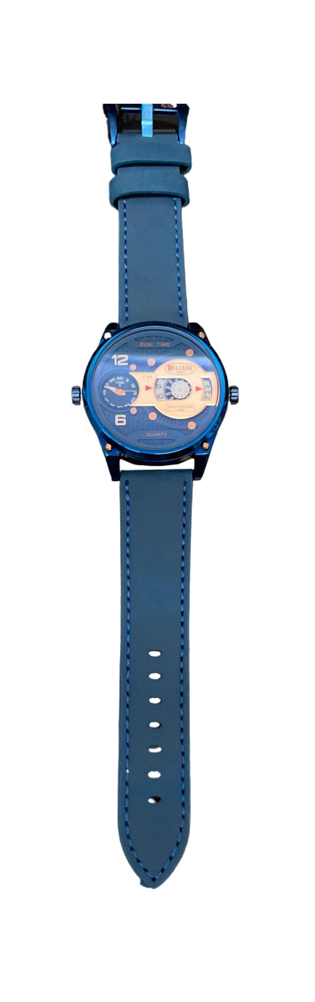 Reloj cronológico correa de cuero genuino fechador BELLEDA