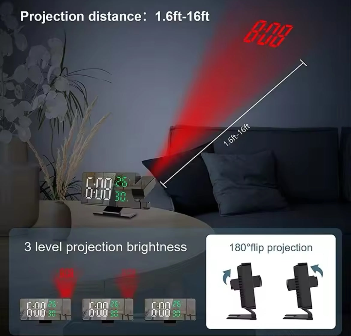 Reloj despertador Digital LED, proyector de proyección, reloj de techo con pantalla de temperatura y tiempo, reloj despertador con retroiluminación para el hogar MOD BBG-600092