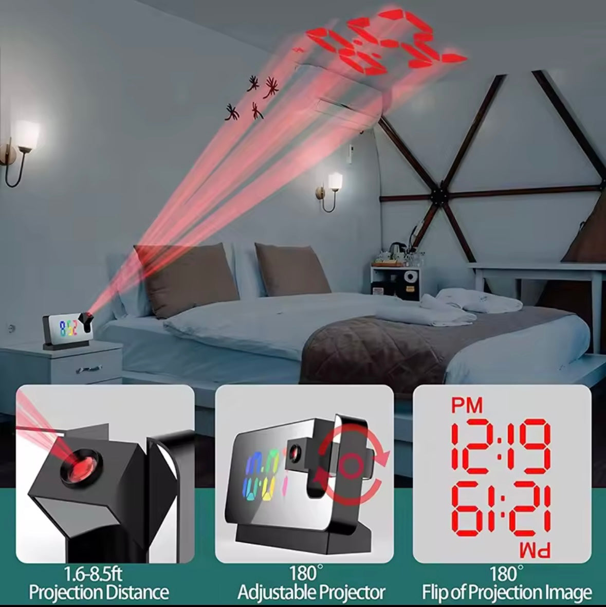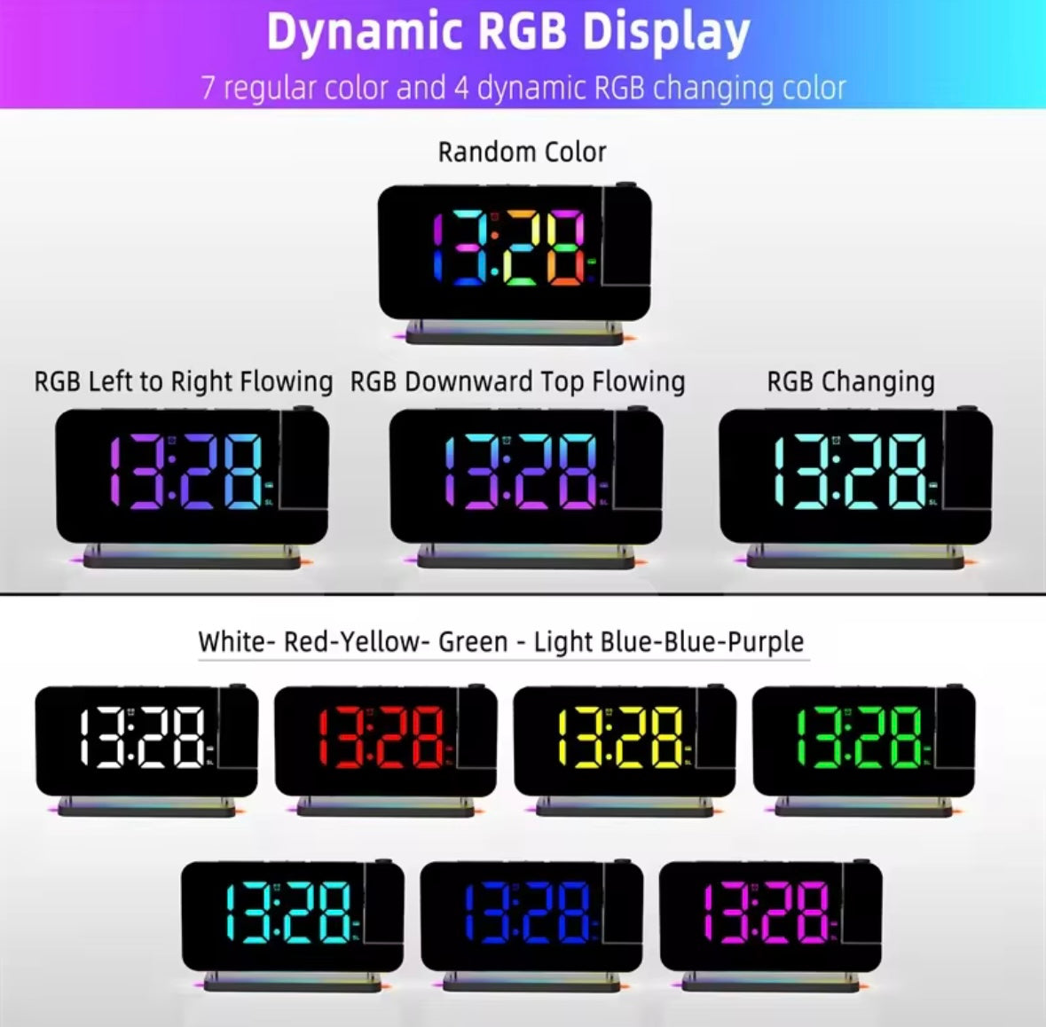 Reloj Despertador Digital Proyección Con Radio Y Proyector MOD DS-3618lp NÚMEROS DE COLOR