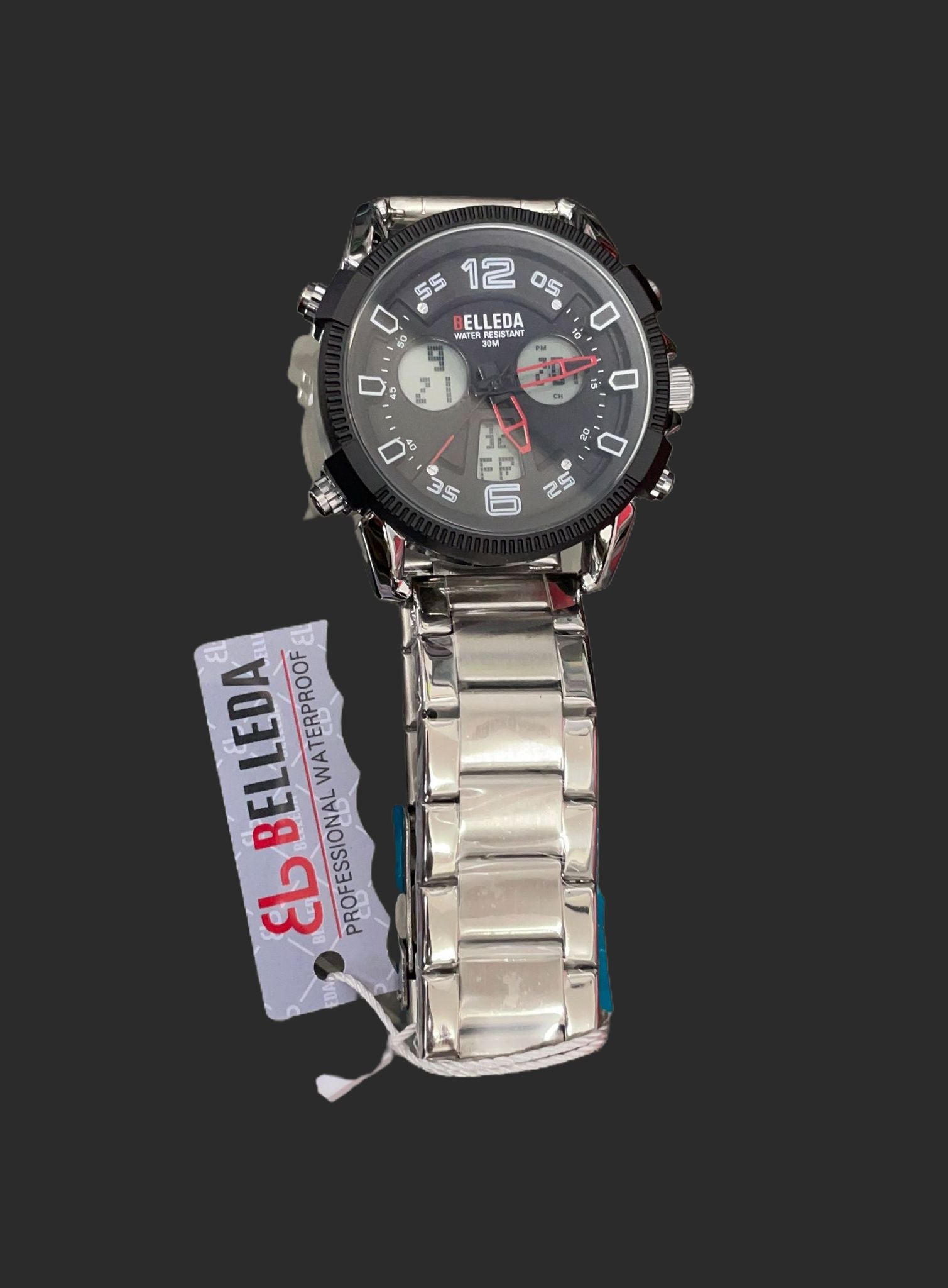 Reloj digital con correa de acero inoxidable y fechador y luz led BELLEDA