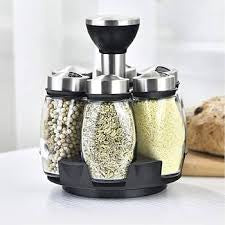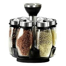 Set Especieros Acero Inoxidable Con Frascos De Vidrio X6 MOD 1662