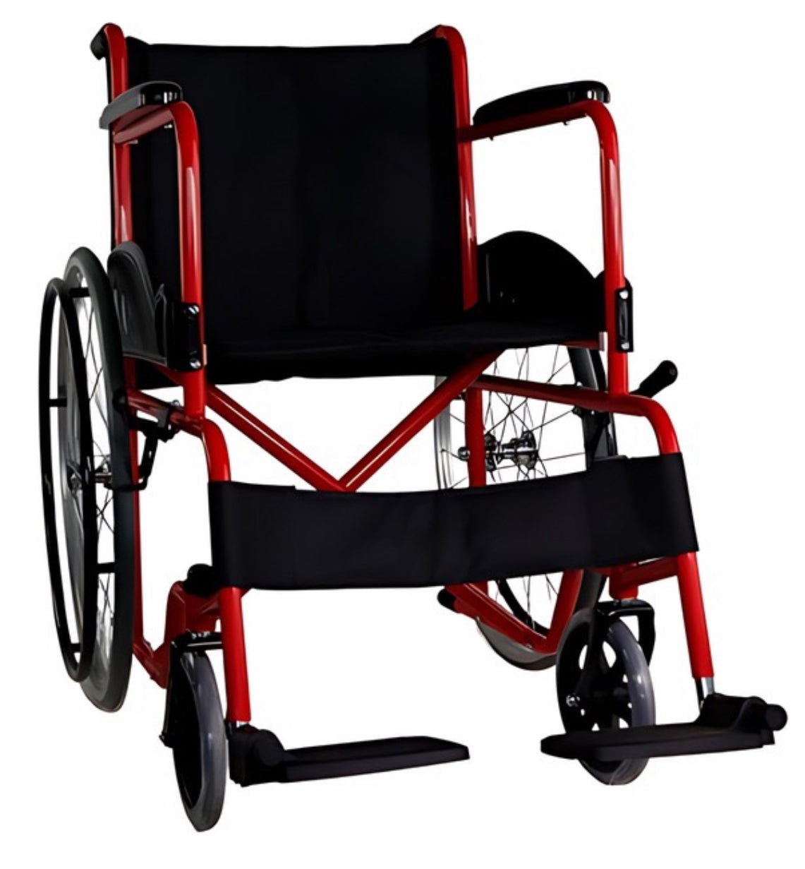 Silla De Ruedas Acero Plegable Economica Adulto Silla De Ruedas De Traslado Plegable Uso Rudo Descansa Pies Color Rojo y azul MOD G7