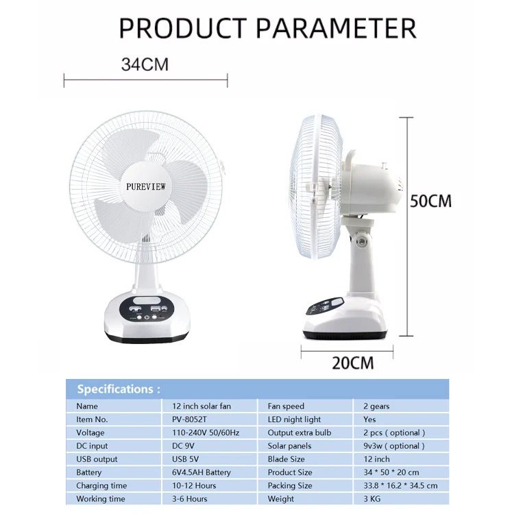 Ventilador eléctrico de Mesa para el hogar y la Oficina, ventilador de aire de refrigeración recargable de CA/CC para exteriores con puertos USB LED,