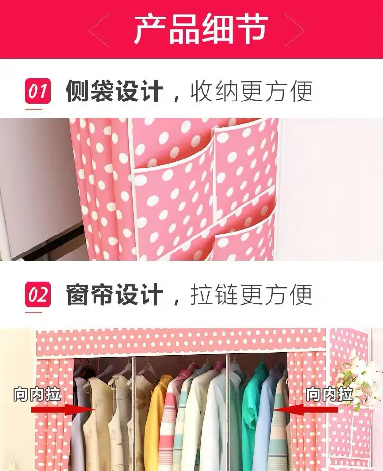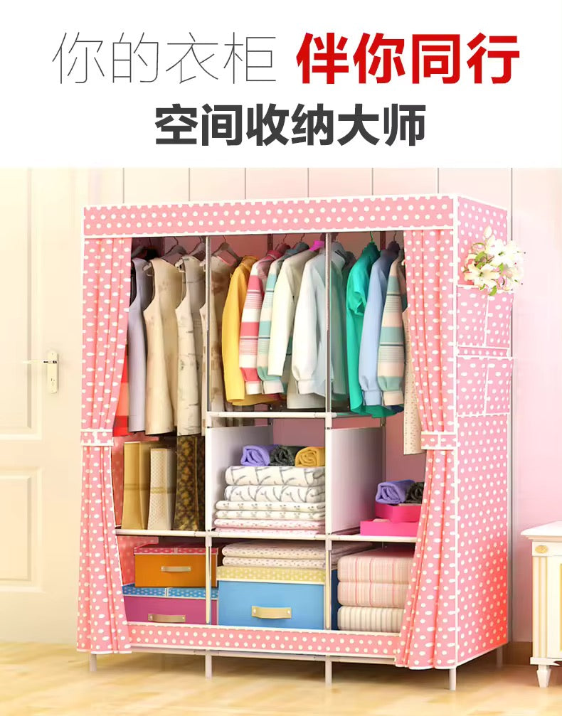 Armario Simple de tela, tubería de acero ensamblada, marco de acero reforzado, gabinete de almacenamiento Simple