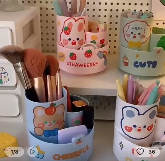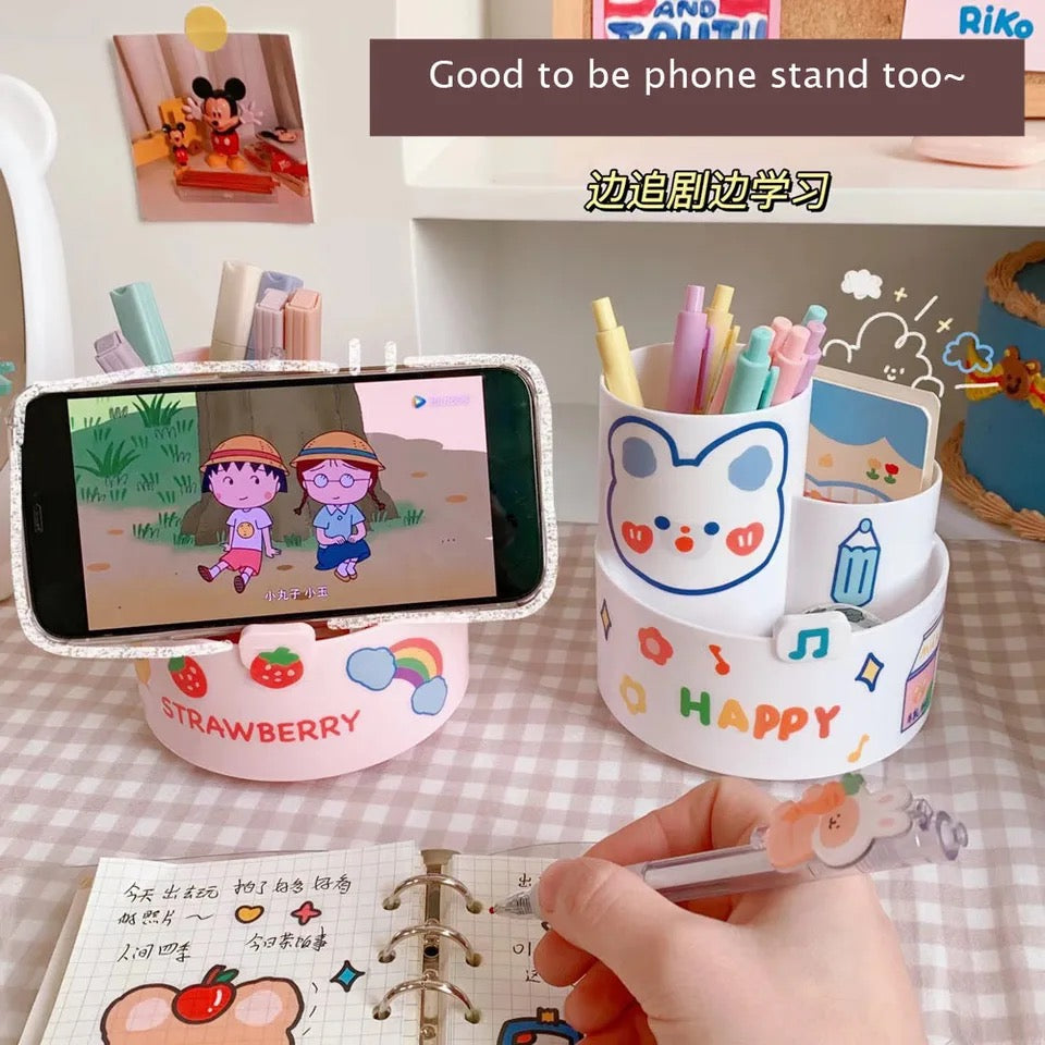 Portalápices giratorio bonito, organizador de papelería de escritorio multifuncional 18133