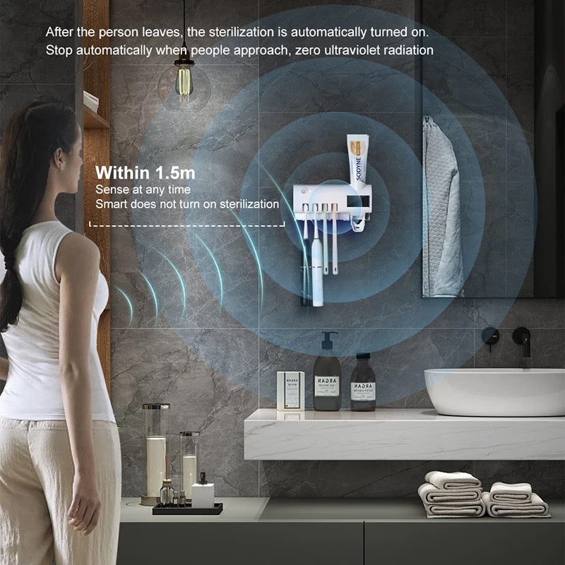 soporte de cepillo de dientes de energía Solar UV, esterilizador de doble capa, dispensador automático de pasta de dientes, accesorios de baño MOD GH2206