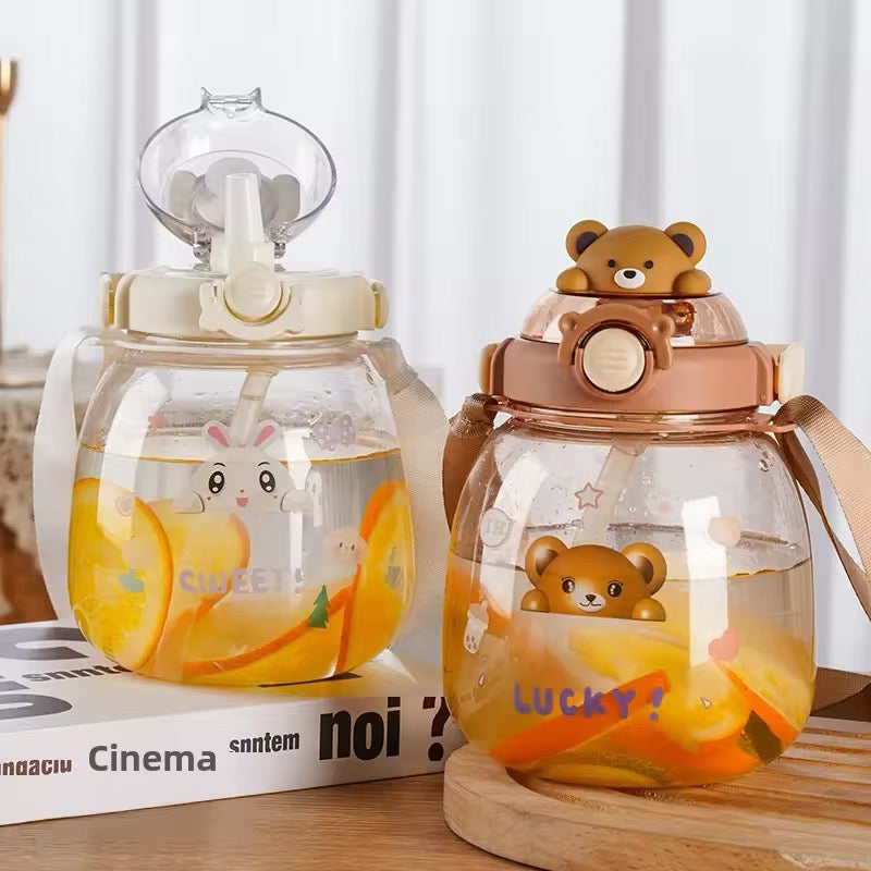 Taza de agua portátil para niños, vaso de plástico con pajita, gran valor estético, dibujos animados, Popular, lindo, Verano MOD 327-12