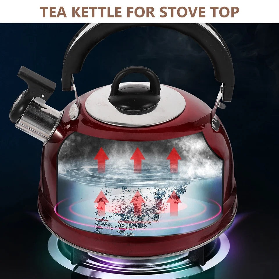 Tetera con silbato de acero inoxidable, tetera de 1,8 litros, estufa de cocina, ergonómica, para agua hirviendo
