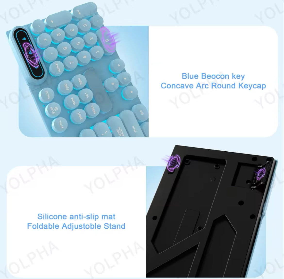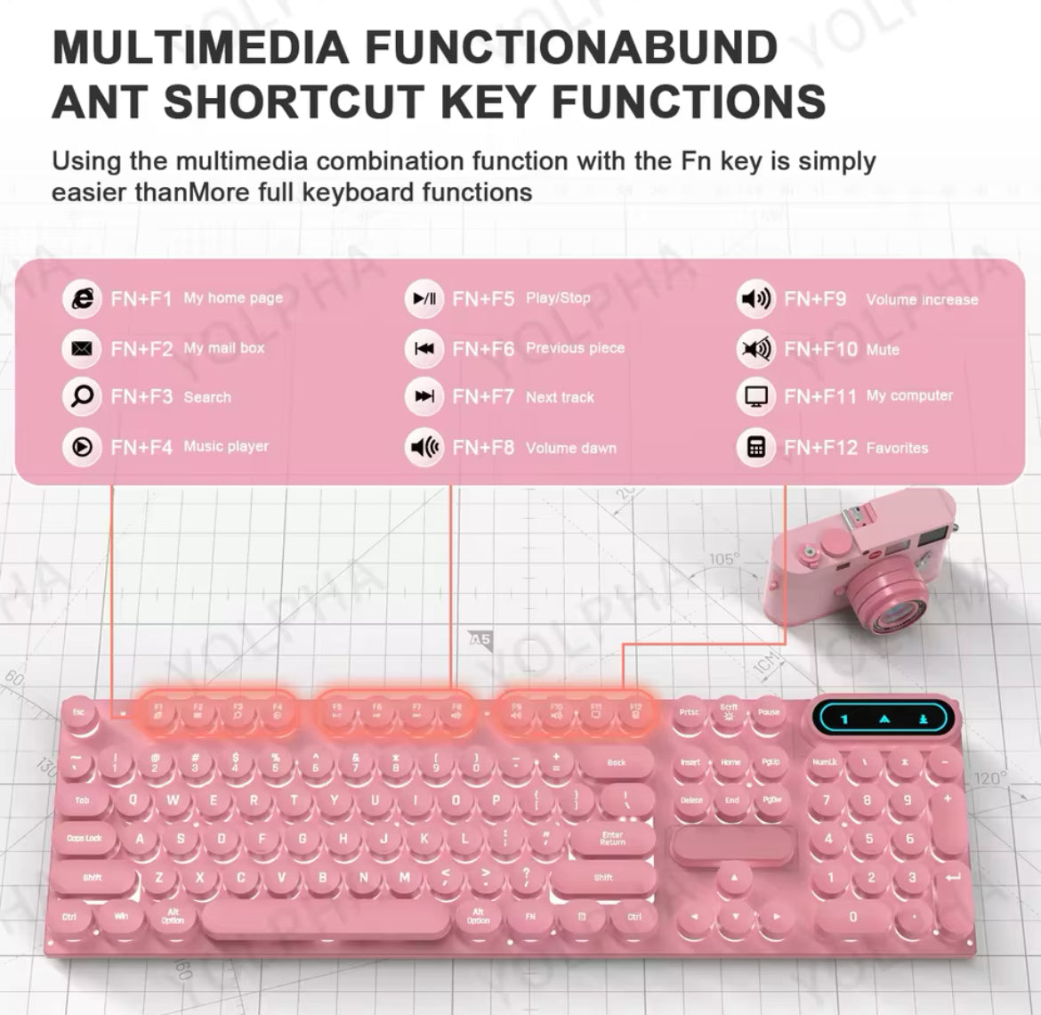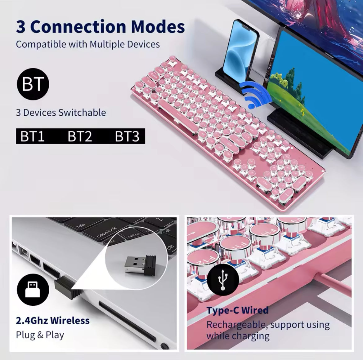 TK950 Teclado mecánico RGB RETROinalámbrico para máquina de escribir Punk, teclado ergonómico inalámbrico de modo Triple para oficina de juegos 5,0/2,4G/con cable