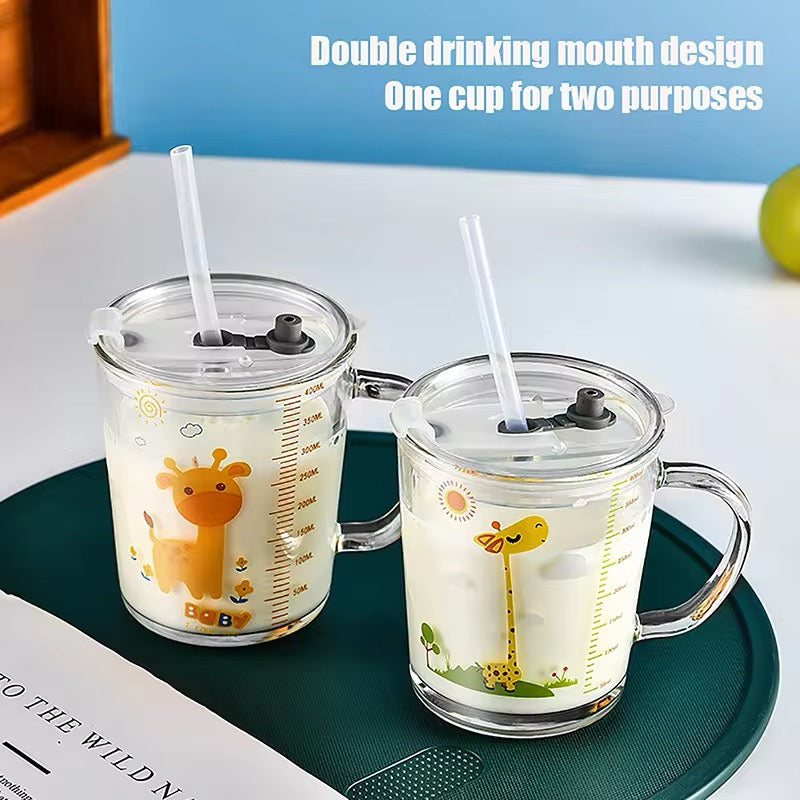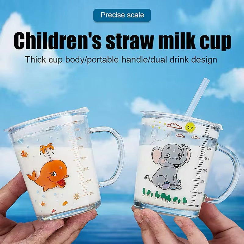 vaso de vidrio de dibujos animados, vasos para niños, 400ml